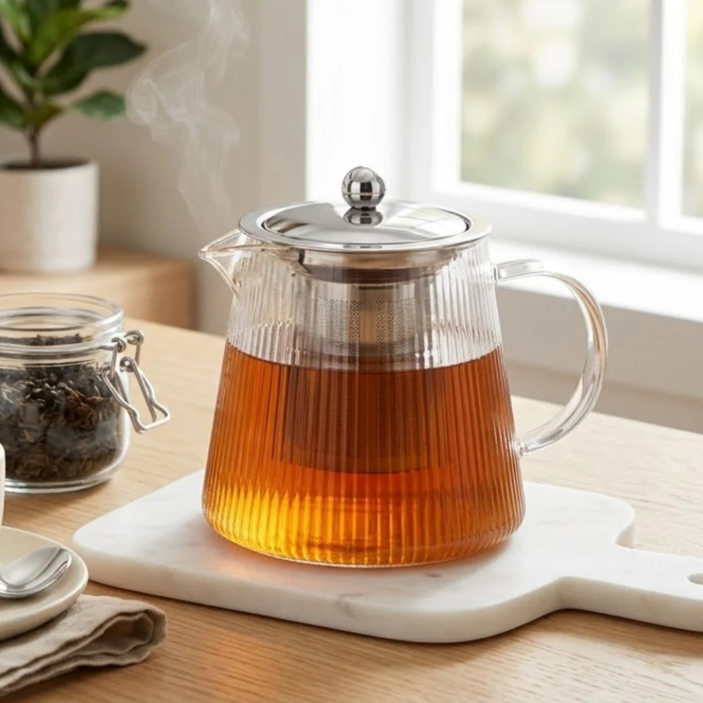 Transforme a hora do chá em um espetáculo visual com a Chaleira Lines. Fabricada em vidro borossilicato, ela é altamente resistente a choques térmicos, permitindo que você acompanhe todo o processo de infusão com clareza e segurança.